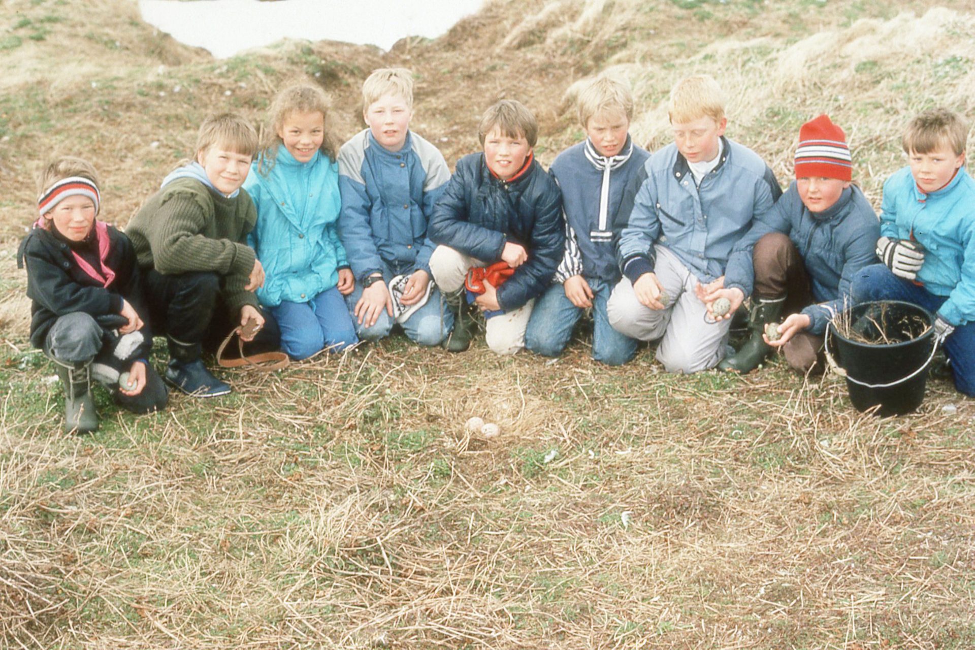 Unge eggplukkere på Reinøya en gang på åttitallet. Det var før det ble definert som barnearbeid. Foto: Roger Skotnes