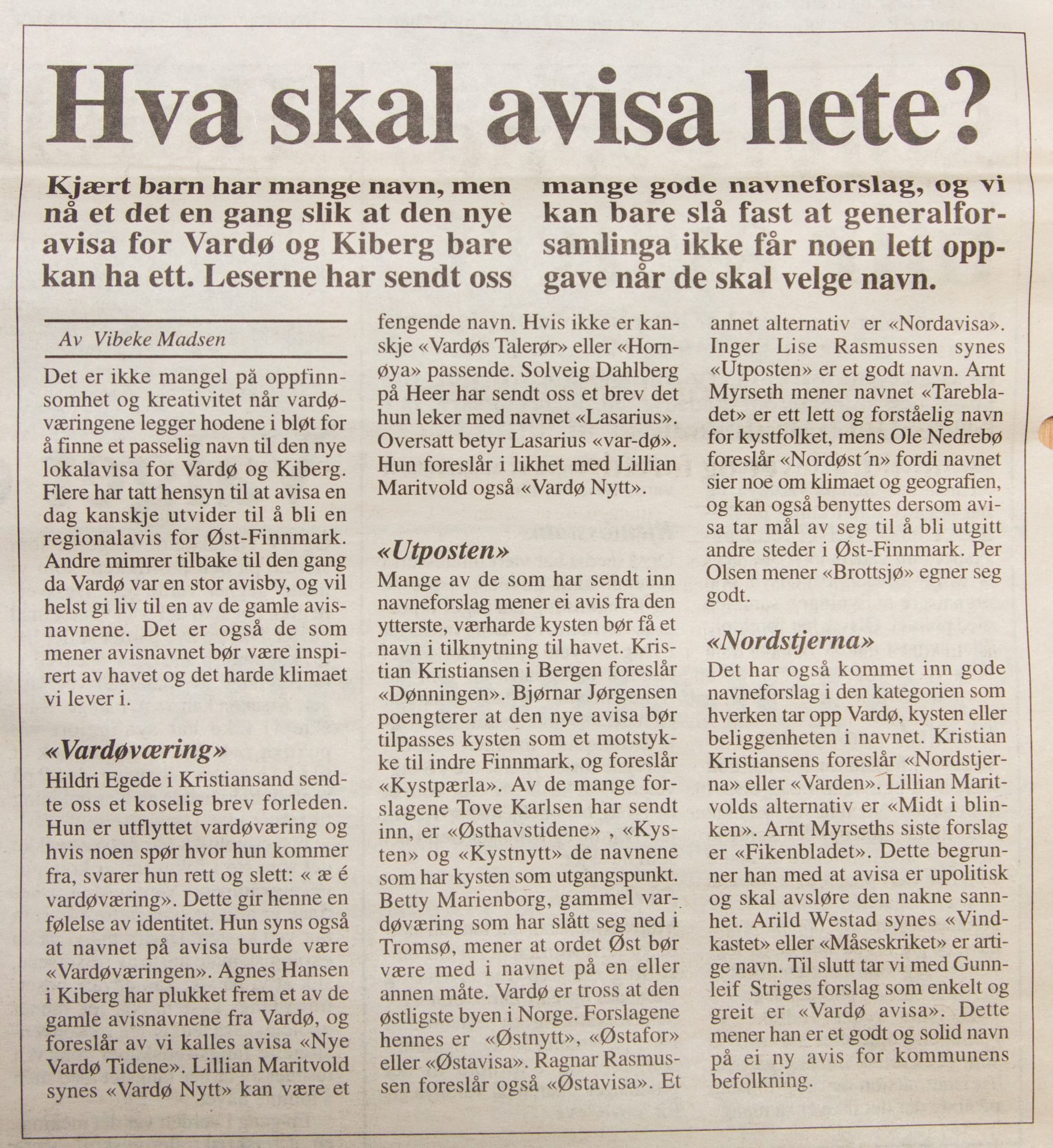 Først Østhavet ble Østhavet var det mange forslag til hva avisen skulle hete. Her er en artikkel fra tiden før avisen fikk sitt endelige navn. Dette er fra 13. oktober 1995.