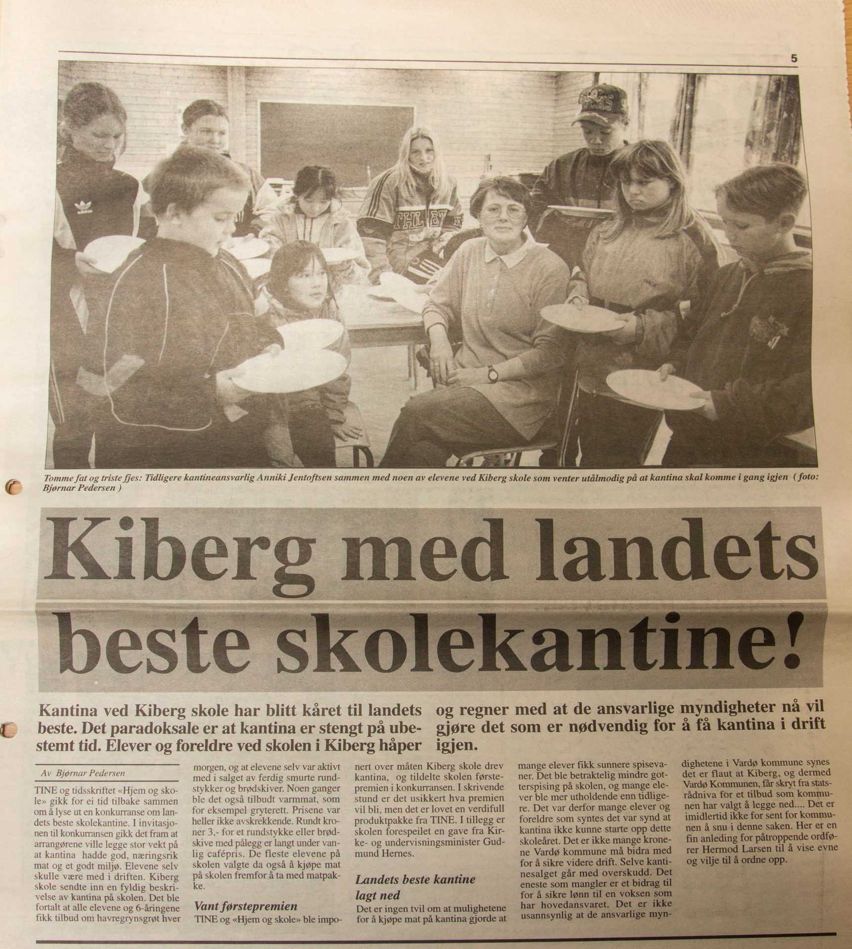 I et utgave fra 13. oktober 1995 kan man lese at Kiberg skole hadde landets beste kantine. TINE og «Hjem og Skole» var imponert over måten Kiberg skole drev kantinen.