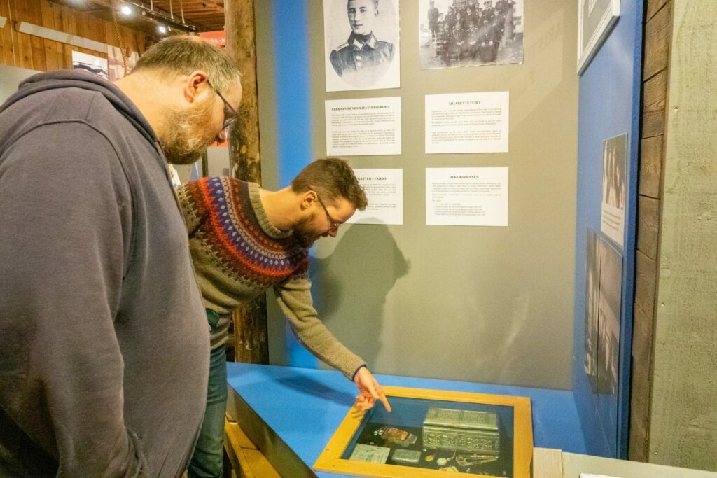 Siden 2007 har han jobbet i perioder ved museet. Andreas forteller i vei mens vi går rundt og ser på utstillingen. Stadig kommer han med nye glimt i fra en tid som har vært med på å forme Vardø til stedet det er i dag. Selv om jeg føler meg godt belest og oppdatert på egen bys historie, lar jeg meg være nysgjerrig. Jeg stiller spørsmål, kanskje mer enn vanligvis når jeg er innom. Men hvor lærerikt! Flere for meg ukjente historier dukker opp og mange nye tanker om egen by dukker, i fortid, nåtid og framtid dukker opp.