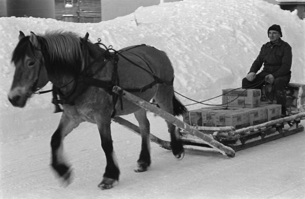 Hvor mange hestelass torsk ble kjørt til hjellene under vårfisket i tidligere år? Far til Arne Hallonen var hestekjører med egen stall. Faren Hans startet driften i 1926 og eide 10 – 12 hester opp gjennom årene. Han kjørte fisk for Kr. Voie, og Arne hjalp til. Arne forteller at det gikk 500 kilo ferdigsperret torsk i hver slede. Akkurat samme kvantum var det i lasset når de brukte tippvogn. Hestene klarte 25 lass om dagen, eller 3 lass i timen.