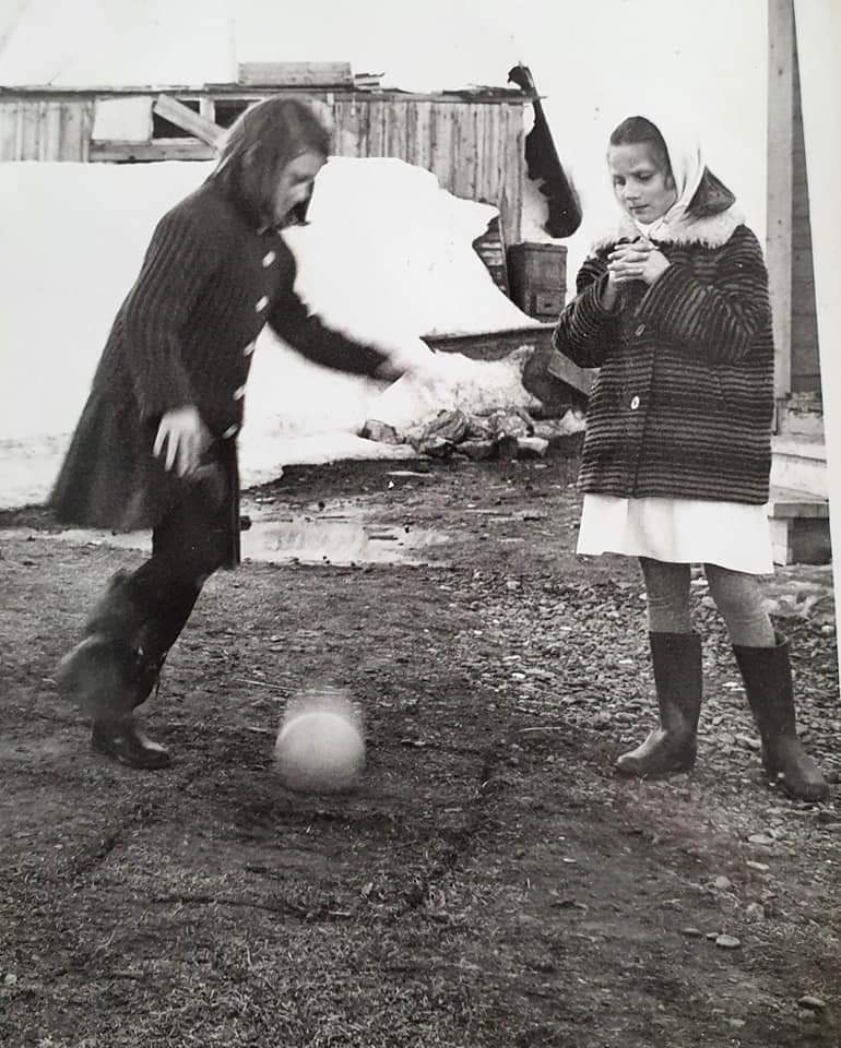 Vi var sikkert på vei til en eller annen aktivitet i værret, Svanhild og jeg, da vi passerte huset til ho Snefrid og han Johan. Der stod en av tvillingan på hushjørnet. Da han så oss stemte han i og sang: «Sola skinner det er vår, Gaggi og Poddis ut på trappa står.» Gaggi og Poddis, det var Svanhild og jeg.