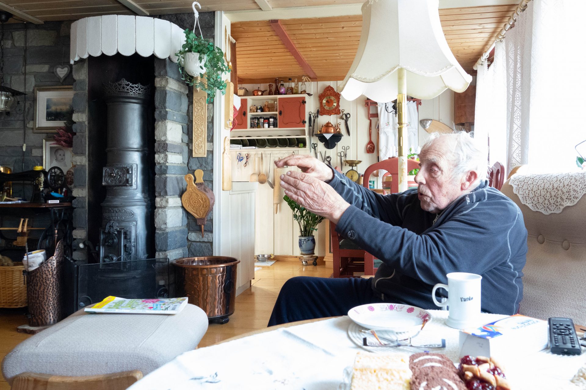 – Vil du ha kaffe?, spør Inger Lise. Jeg takker ja til det. Fram kommer både kaffeservise og et fat med et utvalg fristende småkaker.