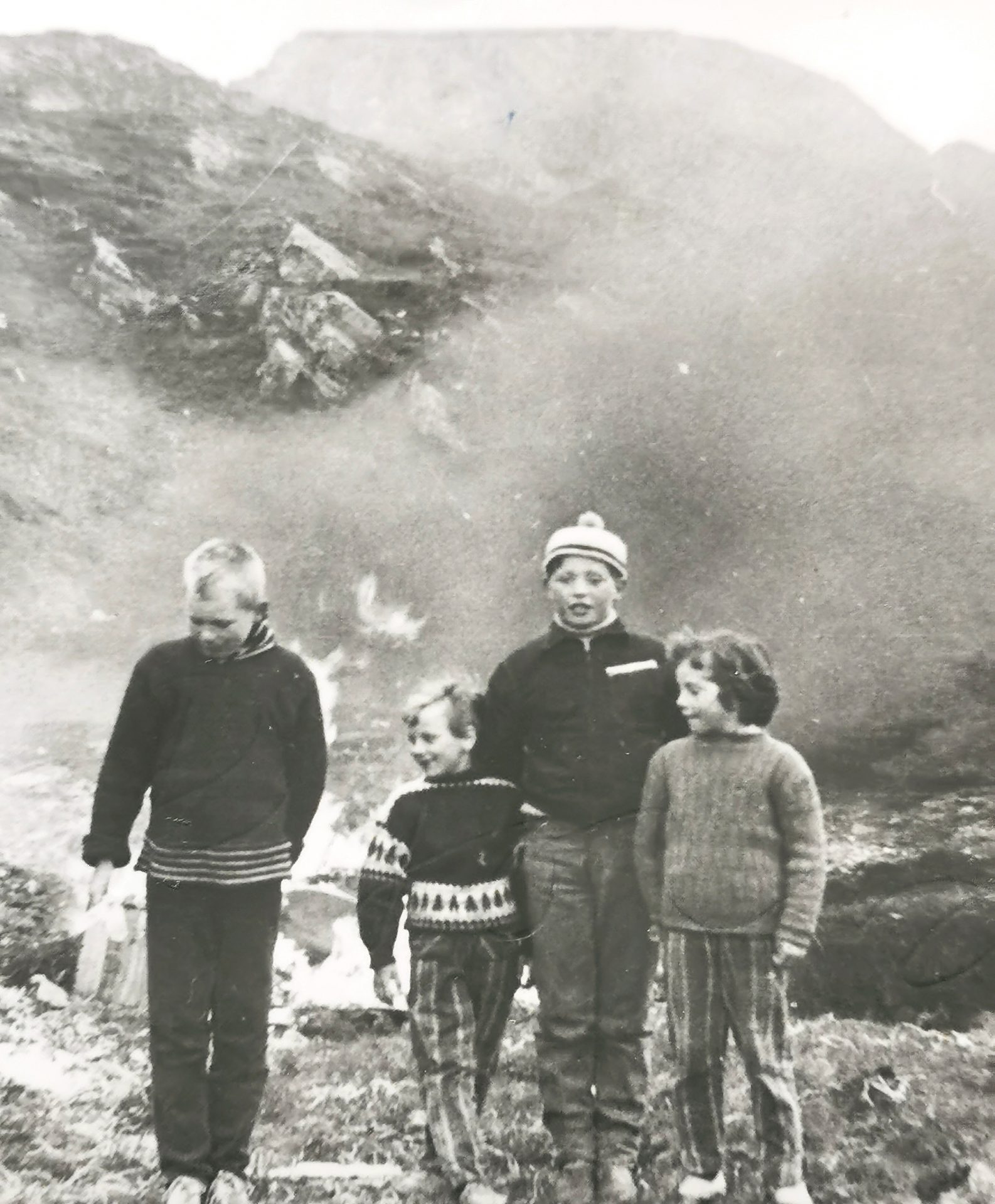 Opp på Korshaugen bærer det med oss, vi river og slit i lyngen og stapper den i sekkene. Her skal det bli bål og røyk! Hadde dette vært i dag hadde vi blitt stoppet. Miljøkriminalitet ville det ha blitt kalt.