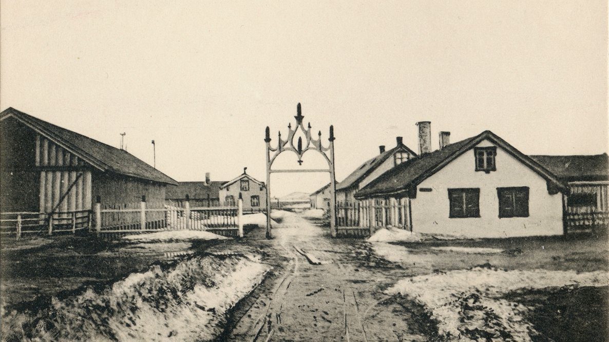 Nils Christian Petersen deler gjerne sine erfaringer fra oppveksten i Vardø og Hamningberg. Fotografiet over viser blant annet Løytnantsgården som familien Petersen i mange år etter krigen bodde i. Bildet er tatt mens kongeporten ennå var i bruk. Det viser vegen mot...