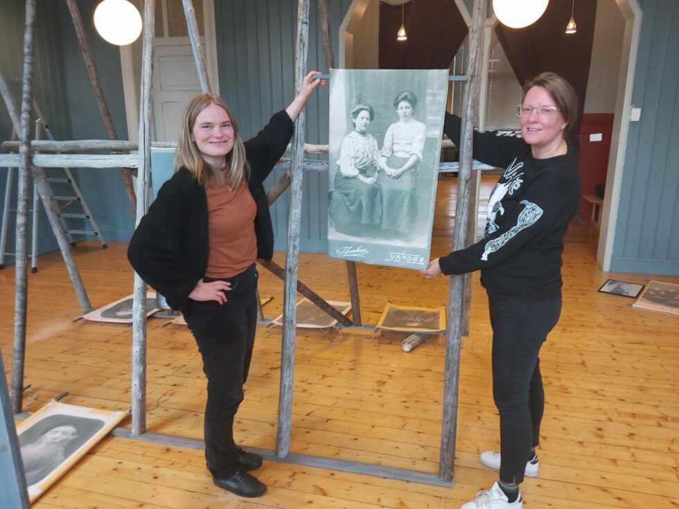Der viser det seg at formidler Maria Berteheussen Skrydstrup er i ferd med å henge opp forstørrelser av gamle portretter av vardøværinger på en fiskehjell. Men det er slett ikke alt.