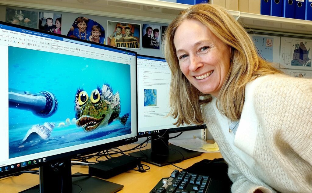 Komiker Trine Lise Olsen har stemmen til den lille fisken «Laila» som forteller om hvorfor det er viktig å vite mer om de store fiskebankene i nord.–Å spille fesshompa er noe det fineste jeg har gjort, sier komikeren.
