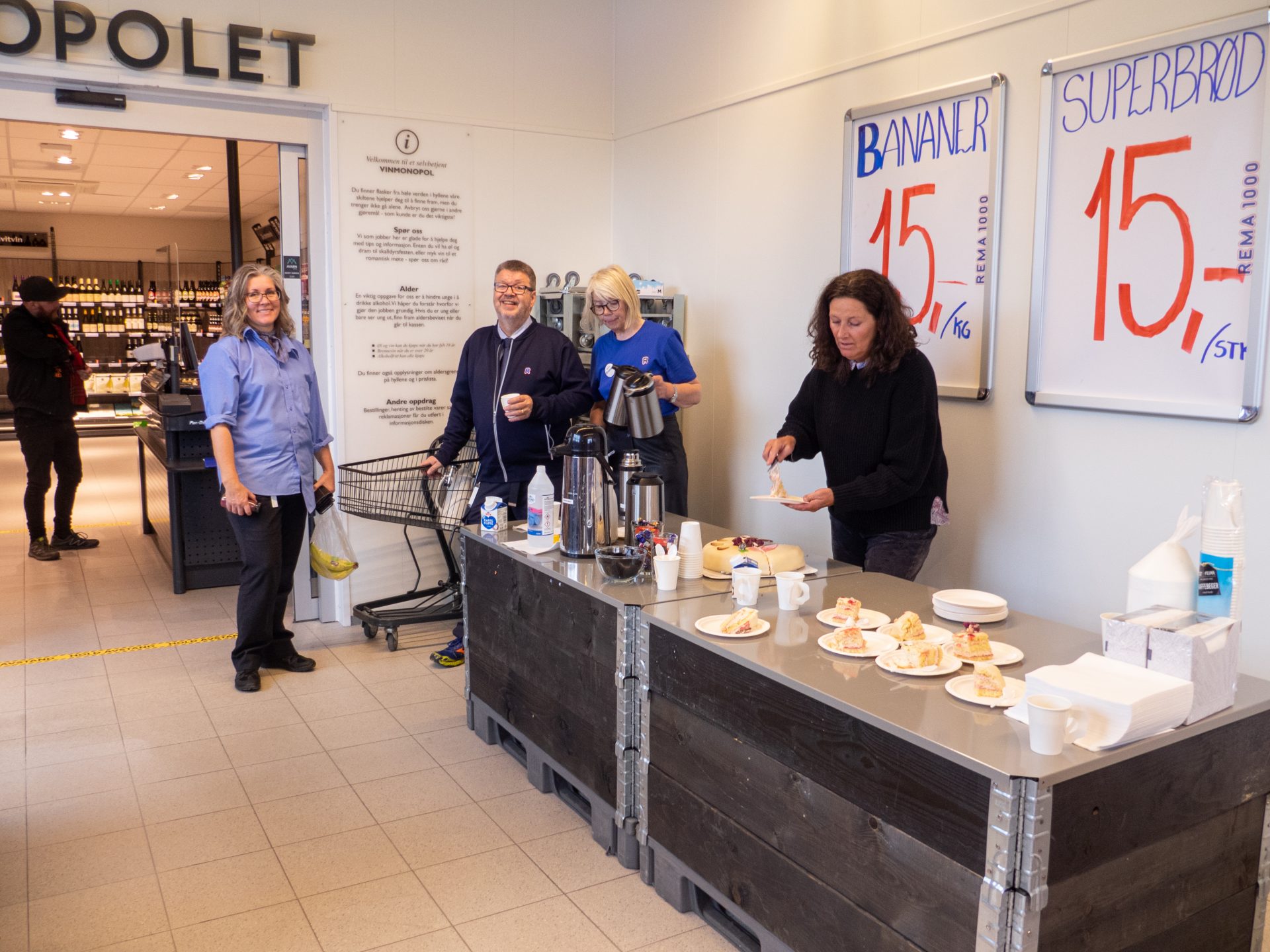 Åpningen(e) ble feiret med både kaffe, kaker og (hånd)sprit. Og i begge butikkene ventet det et nytt og bedre vareutvalg.