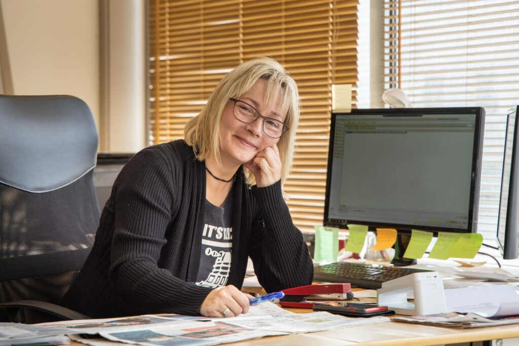 Før hun tiltrer 100 prosent i jobben, har hun oppsigelsestid hos sin tidligere arbeidsgiver på Strandtorget. Likevel får vi henne på kontoret to dager i uken inntil videre.