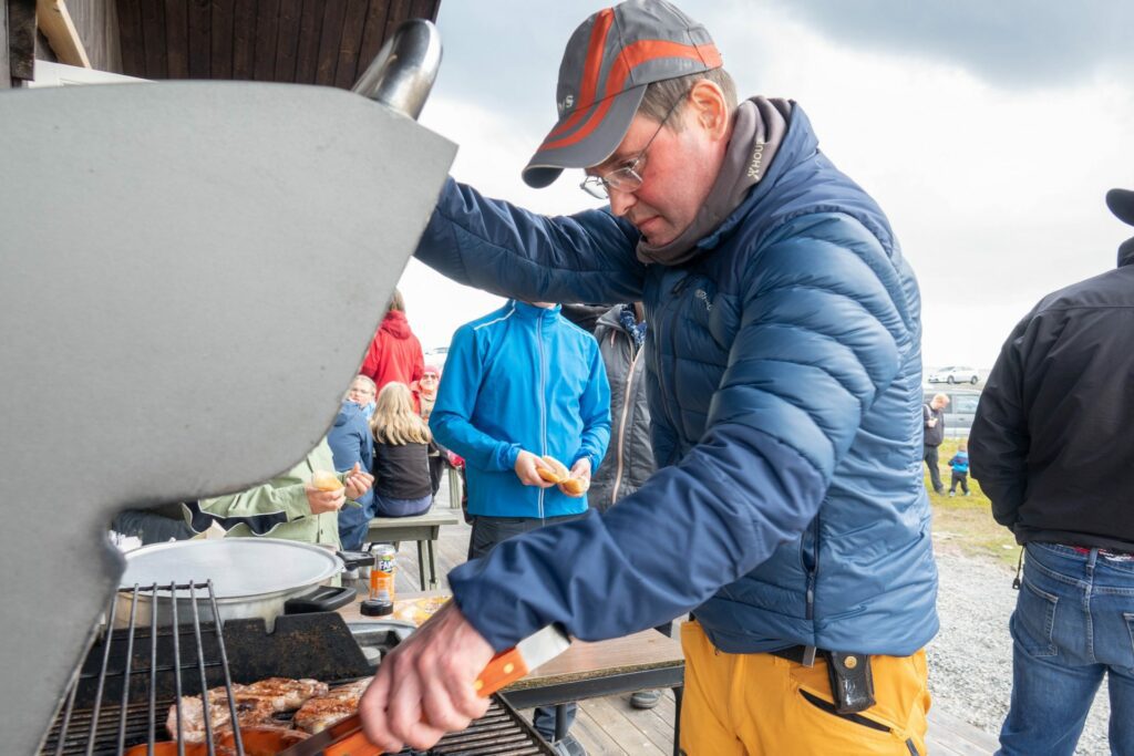– Det er litt krise nå. Det ser ut som vi går fri for pølsebrød. Vi planla utfra tallene fra i fjor, men det går tydeligvis unna med pølsene i år. Men vi får håpe det går bra, sjefen liker ikke når det er dårlig planlagt, sier han muntert og henviser til kona Hanne.