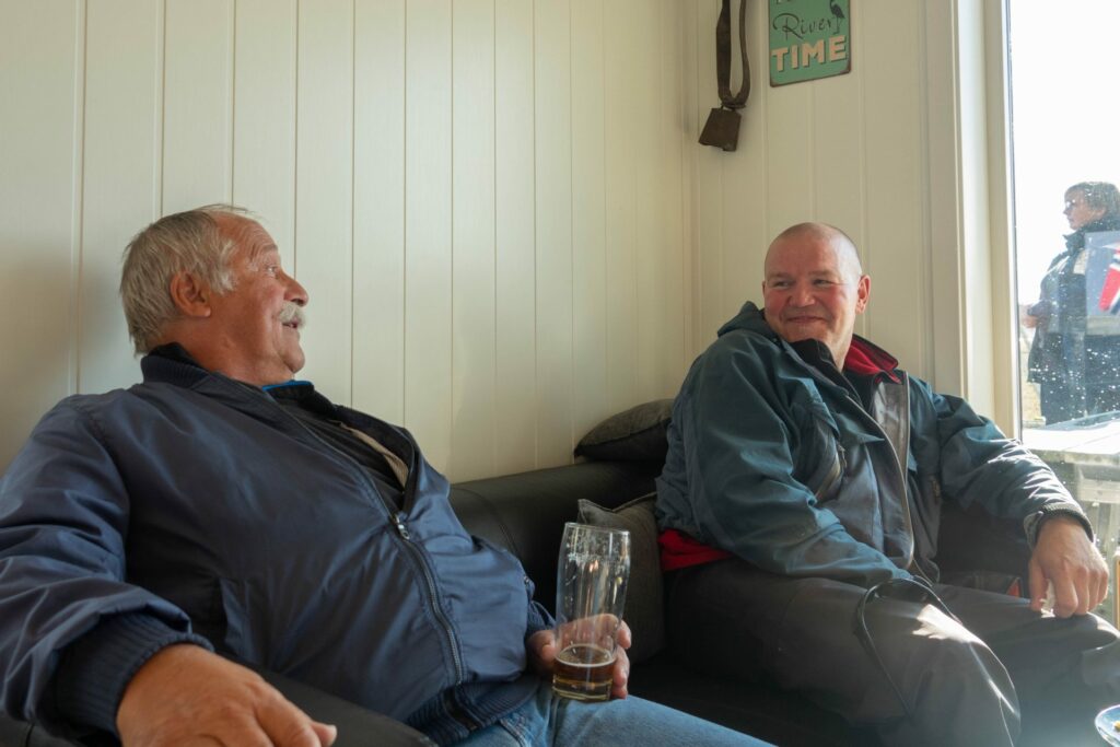 – Du får komme og dekke kampen, sier Arne muntert før et veddemål begynnes å diskutere. Av hva de legger i innsats og takker nei til av både hopping i havna mm., skjønner jeg at de kanskje ikke er så skråsikre i sin sak. Men det skal jo være koselige og vennskapelige belønninger til den som vinner er de begge enige om.