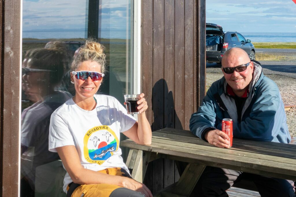 Når stormen av kunder fra Andeløpet har forlatt Komagvær, sammen med regnet, stråler sola. Fortsatt er det flere besøkende igjen, men man merker stemningsskifte i kafeen. Nydelig laksesuppe serveres, og det er mer tid til prat over bordene.