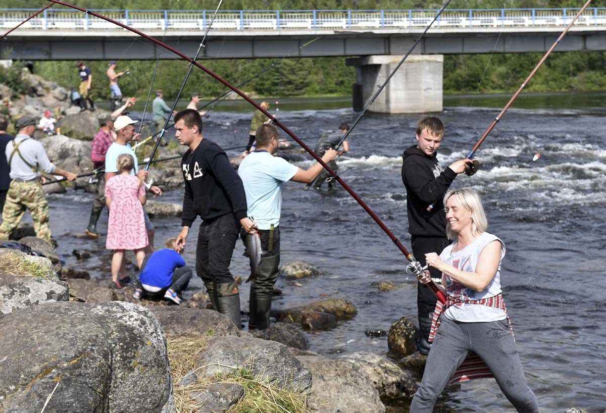 – Folk strømmer til fra nær og fjern. Det er teltplasser i hele området. Folk kommer helt fra Ukraina for å ta del i fiskeeventyret, forteller Anastasia Balanina. Det er tillatt å fiske fra klokken seks om morgenen til midnatt. Resten av døgnet får fisken passere uhindret opp til de øvre delene av elva.