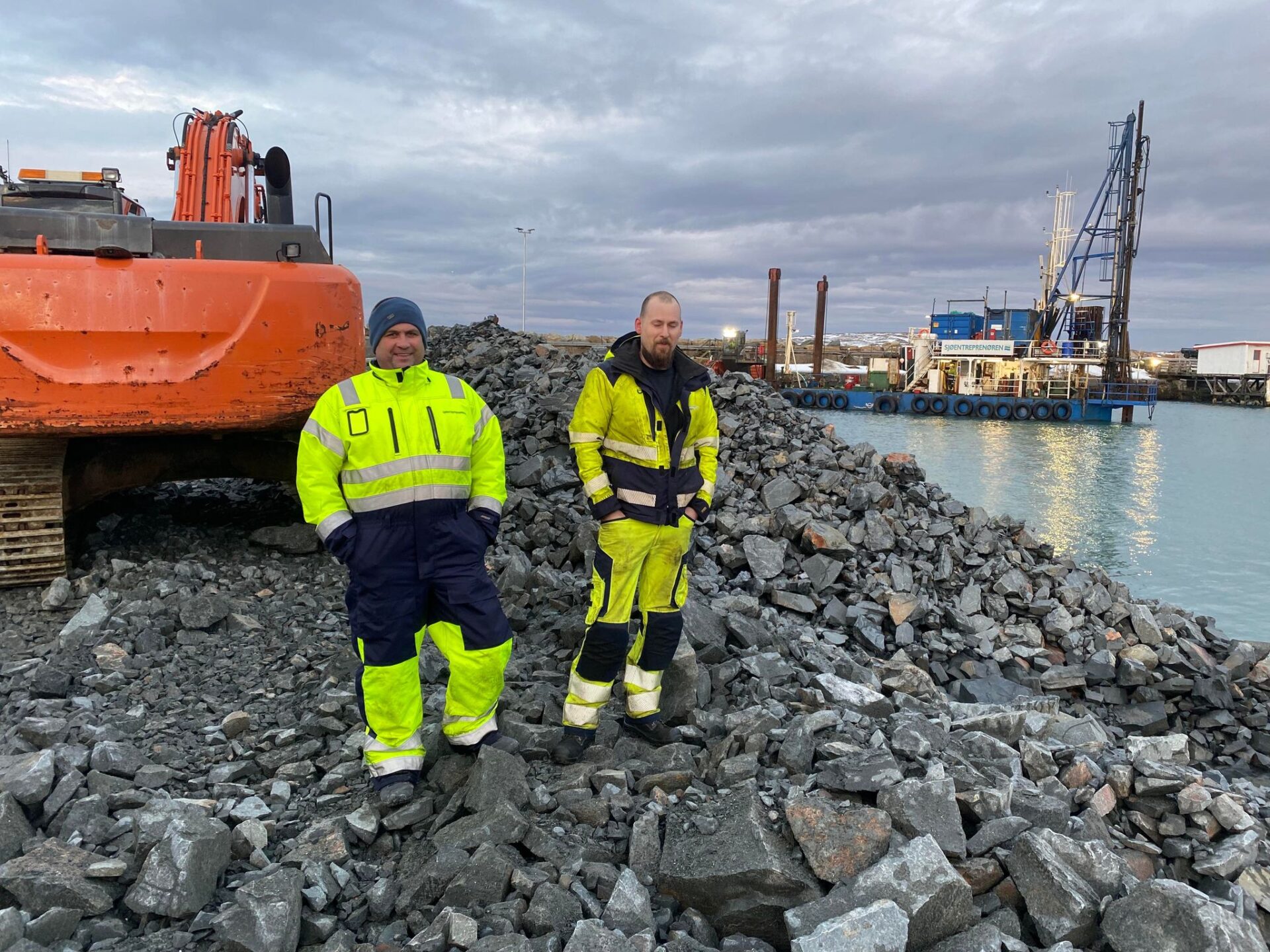 Selv om Sjøentreprenøren pakker sammen, er fortsatt ikke hele jobben sluttført. Det skal legges en skrå helning i front, det skal plastres og det skal gjøres klart for neste og avsluttende del. Den jobben har imidlertid mudringsfirmaet overlatt til Finnmark Entreprenør. – Neste jobb for vår del er i Hammerfest. Når vi får fraktet mudringsprammen dit er enda noe usikkert. Å frakte en stor pram fra Vardø til Hammerfest, over et åpent Barentshav i februar-mars, det er ikke helt enkelt. Vi må nok være ganske sikre på at vi har værgudene med oss hele veien. Det finnes ingen nødhavn, så vi må vente og se når det blir, avslutter Jon Nesse i Sjøentreprenøren.