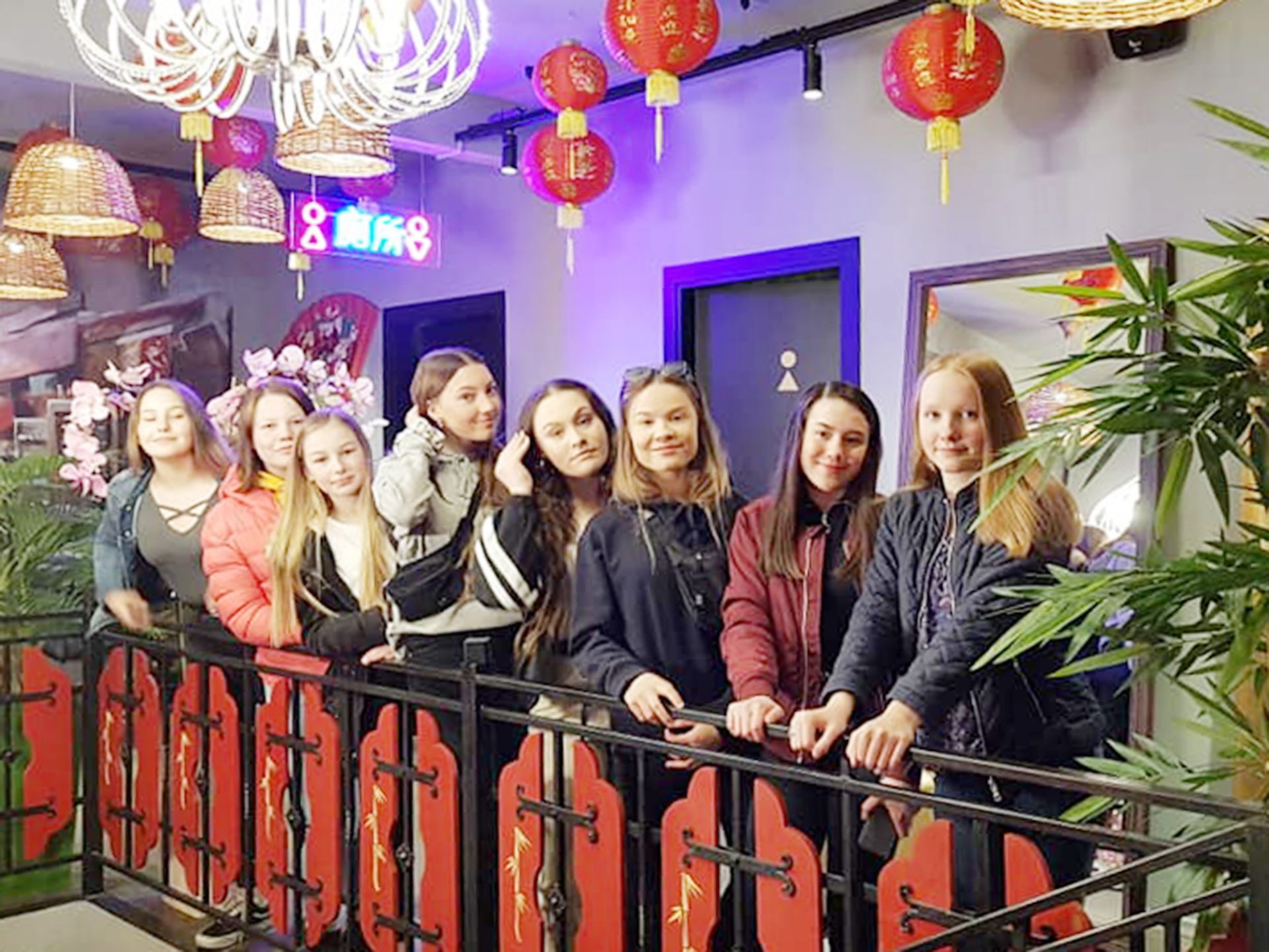 UNGE RUSSERE: Ænniti fikk blant annet danse med ca tre år yngre elever, og etterpå hadde de egen oppvisning for elevene.