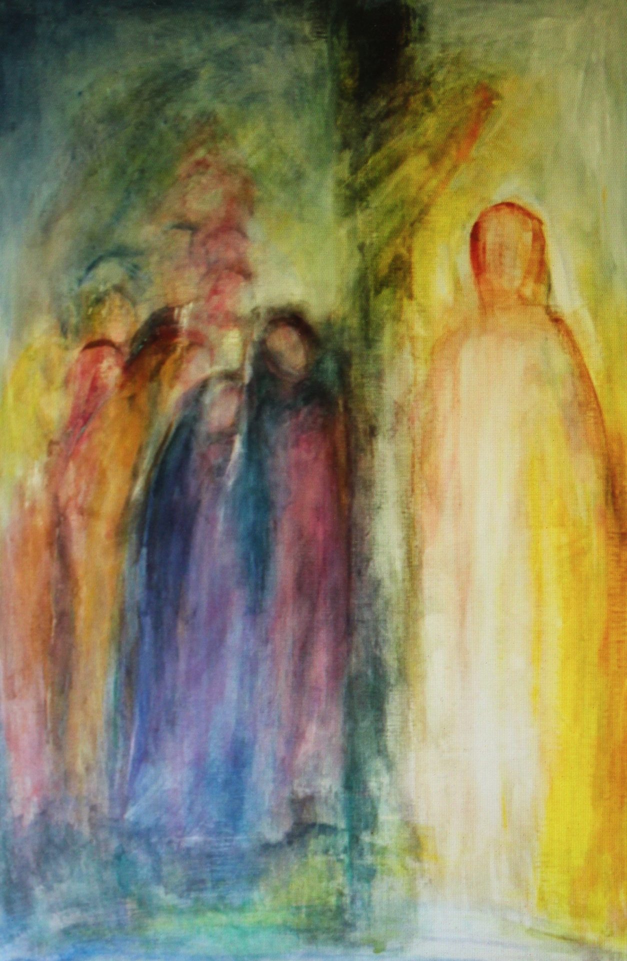 Kunstneren Silvia Gorr har tatt turen fra Tyskland for å stille ut bilder i Vardø kirke. Bildene er fargerike akvareller, mange av dem med bibelske motiver.