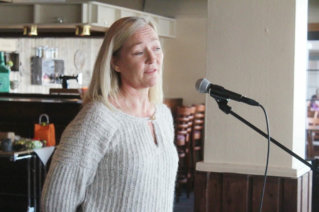Kreftsykepleier Lisbeth Eriksen var invitert for å fortelle om arbeidet kommunen gjør for å følge opp folk som har kreft, og hva som ligger i arbeidet som kreftsykepleier. Hun fikk mange spørsmål fra folk.
