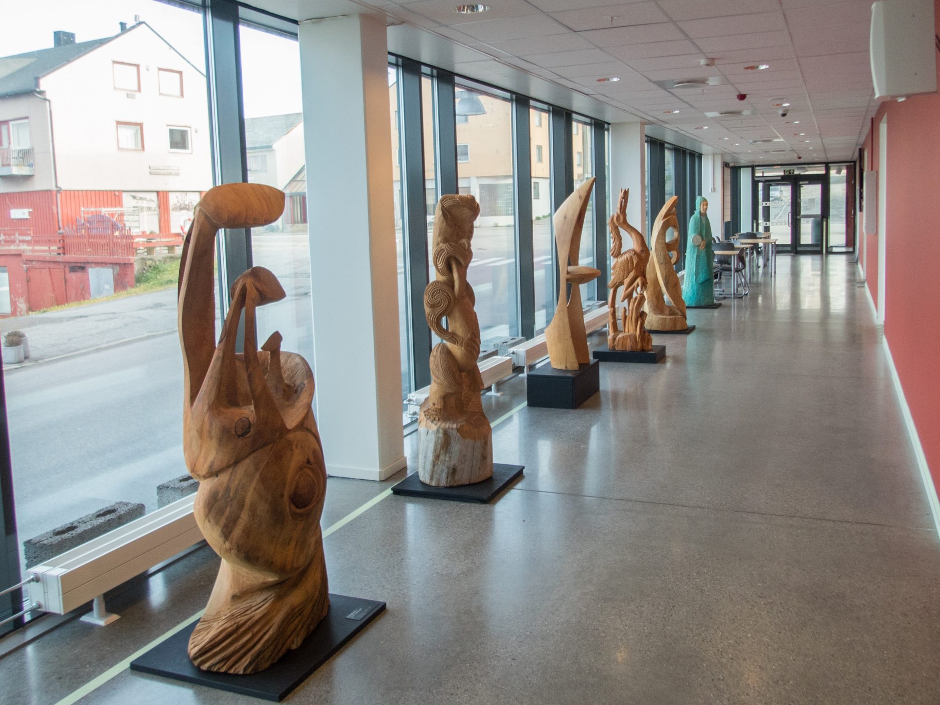 Vardø kommune skriver at det er den største treskulpturutstillingen som noensinne har vært i her i byen. 13 store skulpturer som er laget av kunstnere fra hele verden kan nå sees i glasshuset.