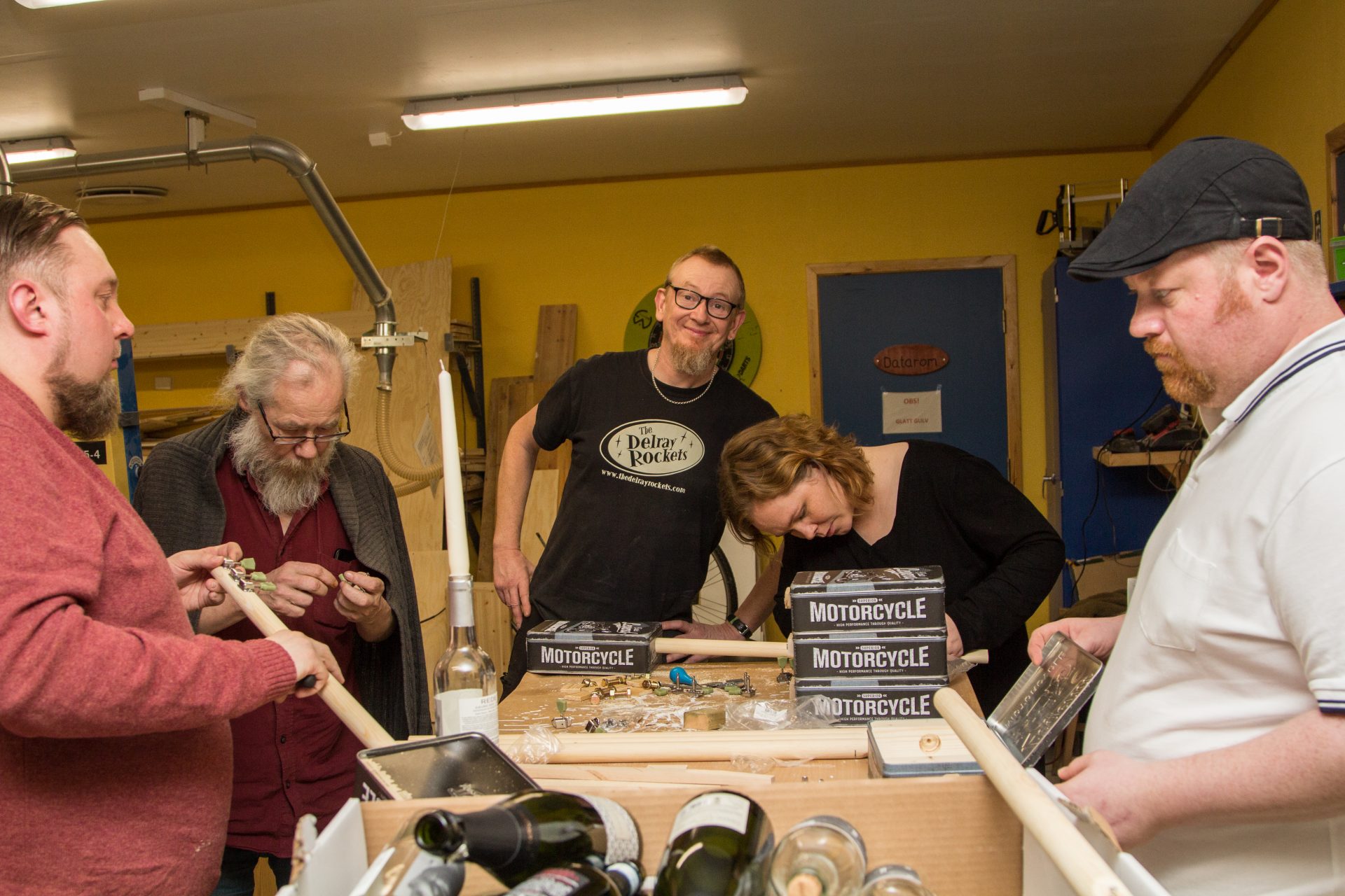 En håndfull nevenyttige vardøværinger tilbrakte tirsdag ettermiddag med Mat Partner (Howlin’ Mat). Sammen snekret de hver sine sigarboksgitarer i lokalene til ASVO.