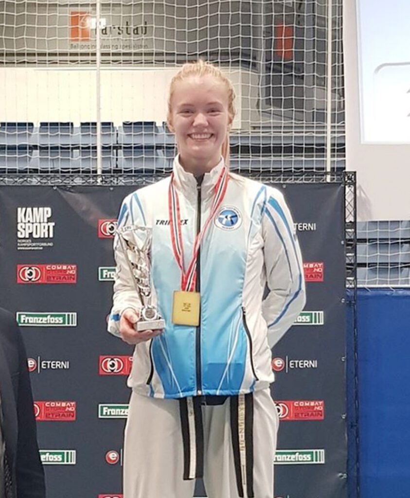 Celine Christensen Olsen har i flere store mesterskap og konkurranser, i både inn- og utland, hentet hjem en rekke medaljer i taekwon-do. Og til og med vunnet pris for Beste Junior Dameutøver i NM 2018.