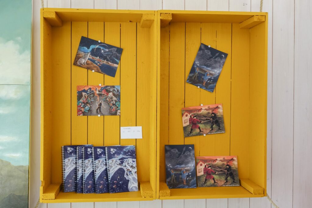 – Se på disse. Er de ikke fantastisk flotte? utbryter kulturpiloten ivrig. Rundt henne pryder kunstverk laget til ære for Pomorfestivalen av kunstner Alena Solomatina i samarbeid med Taibola. Kunstneren besøkte Vardø ved en tidligere festival sammen med kunstnerne i Taibola.