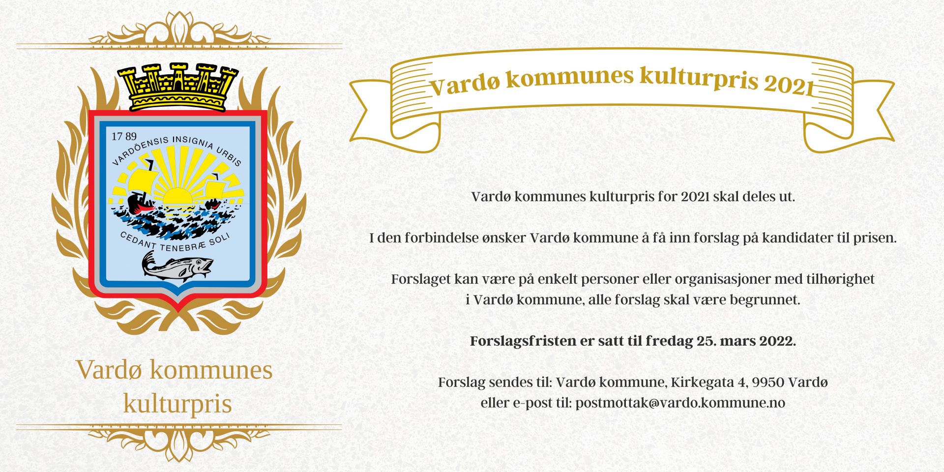 Det er tid for å nominere kandidater til Vardø Kommunes Kulturpris. Forslaget kan være på enkeltpersoner eller organisasjoner med tilhørighet i Vardø. Alle forslag må begrunnes.