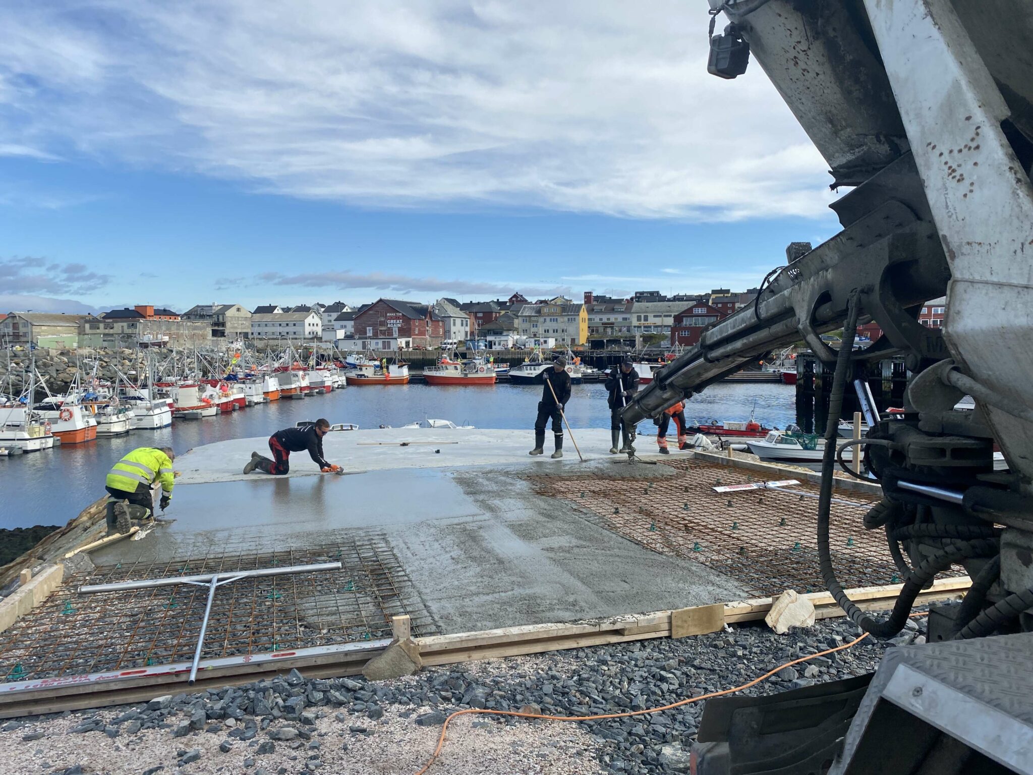 Den siste lille biten bestod i å legge et toppdekke i betong til en del av havnefronten.