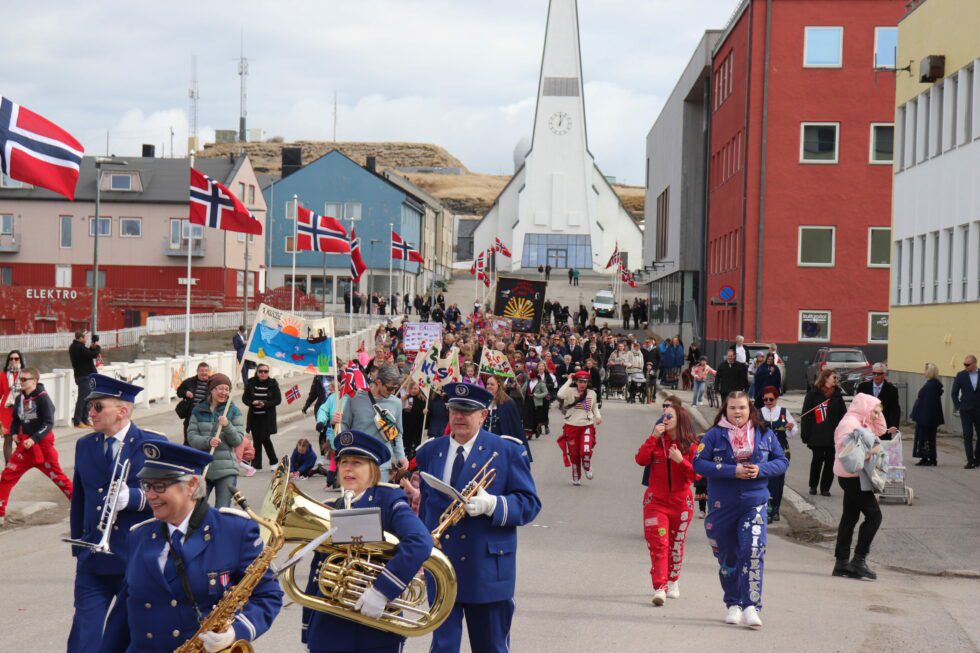 Værgudene var også på vår side, med 5–6 varmegrader og oppholdsvær. Etter flaggappellen dro vi til Kiberg, der folk hadde samlet seg før folketoget med politi, ordfører...