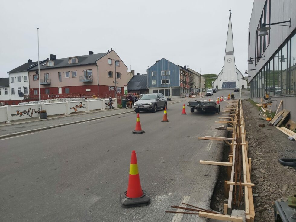 Nå er det endelig kommet til bygging av dette fortauet, som utføres av Finnmark Entreprenør.