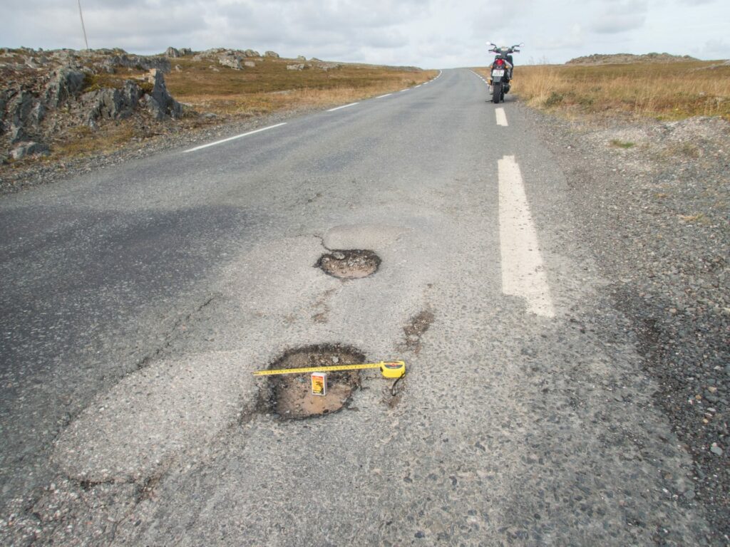 En ting er å kjøre bil, men hva om en tohjuling må gjøre unnamanøver, treffer et hull i veibanen som er dypt nok til å bygge utedass over? I beste fall blir det «bare» punktering og knust felg, men hva skjer så før tohjulingen klarer å stanse helt? Biler med lavere dekkprofil enn «traktor» kan selvfølgelig også få seg en smell som koster.