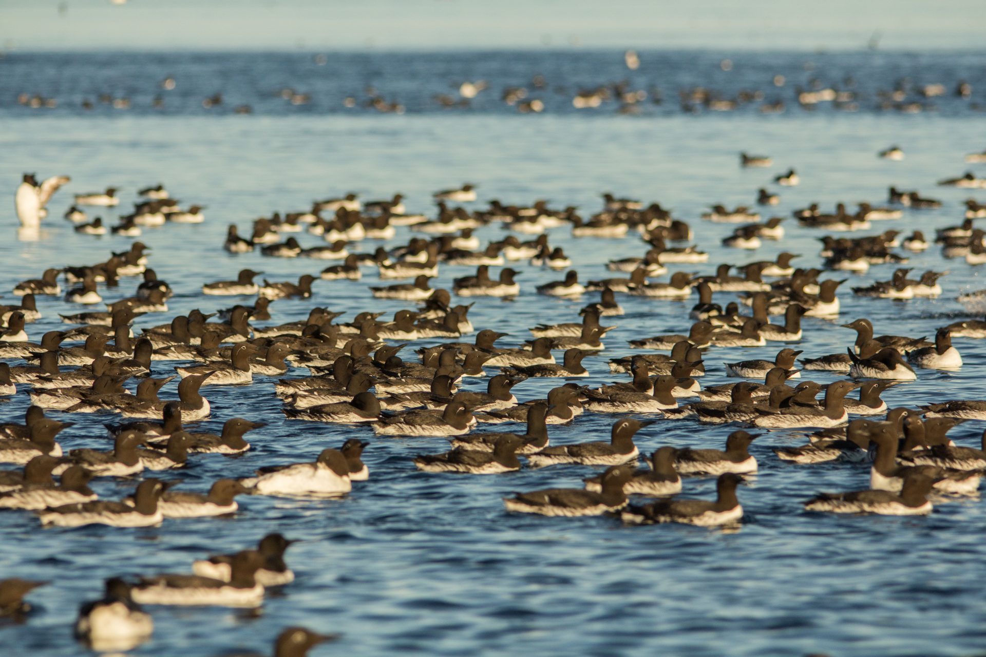 Lomvien har stort sett sittet på sjøen etter at ørnene kom for over en mnd. siden. De siste dager er det telt opp mot 20 ørner.