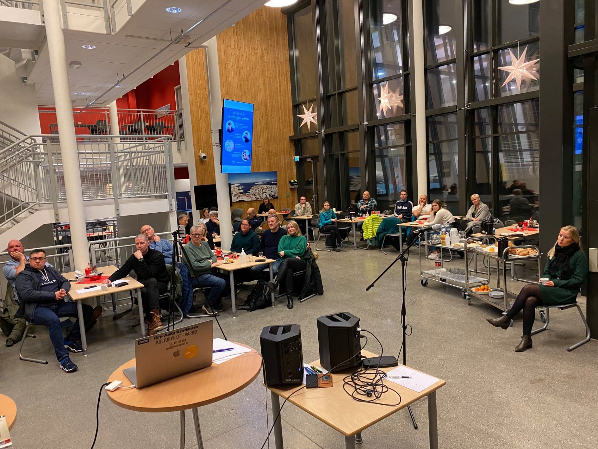 Vardø Næringsforening, drodlemøte. VNF, v/Gry og Kjersti, arrangerte et fantastisk godt såkalt drodlemøte om kreativitet og innovasjon, fremtid og muligheter i Vardø. Med interessante og gode innledninger fra Vardø kommune, Vardø Havn, Dyrk Varanger, Varangerkokken, Museumsforeningen, Art Street Varanger, samt en lang rekke fantastisk gode innspill, fra en engasjert forsamling på nærmere 50 stykker, ble dette et veldig godt møte. Mer av dette!
