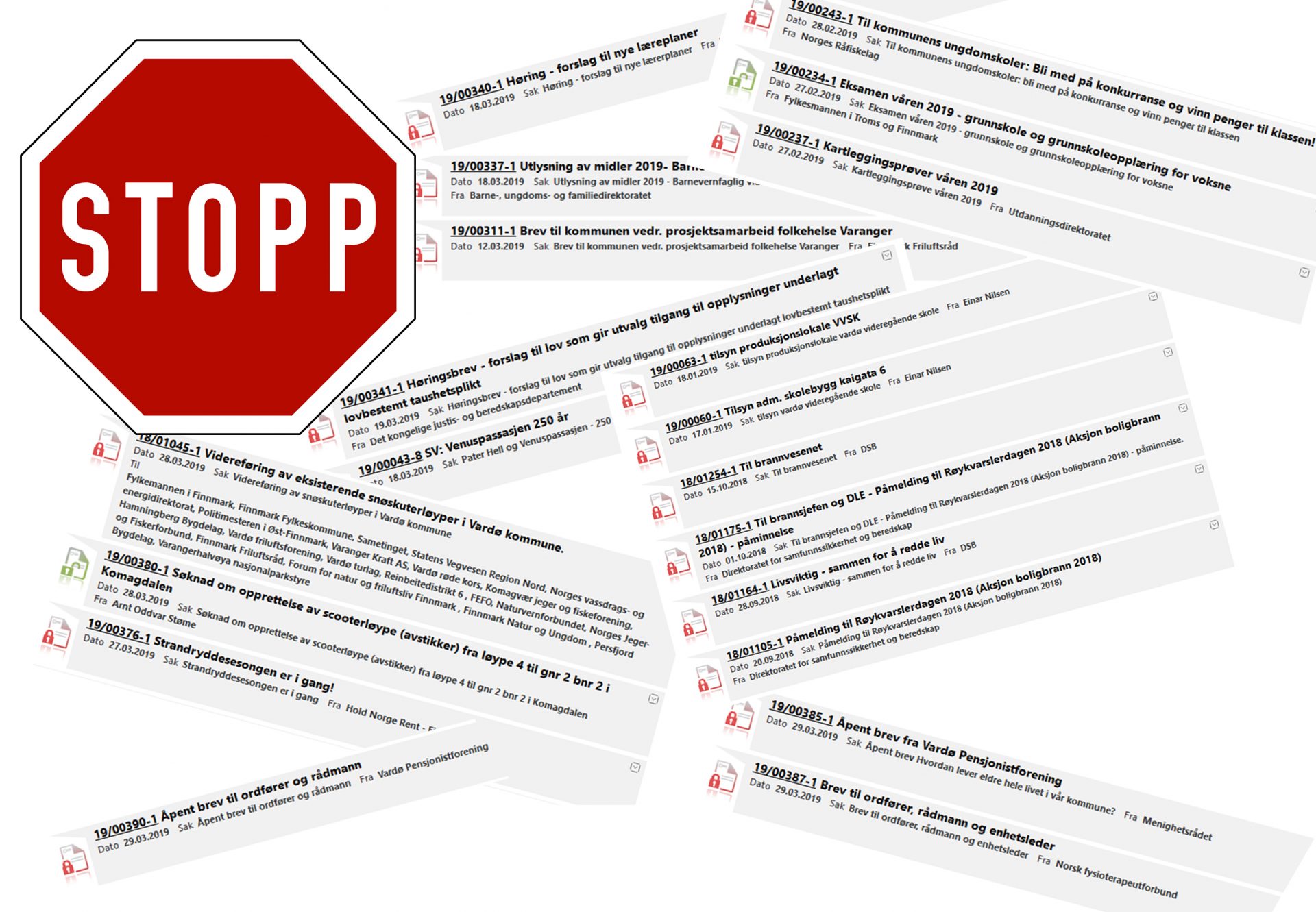 En rask og tilfeldig titt på postlistene til Vardø kommune viser at selv den minste og mest uskyldige ting kan bli unntatt offentligheten her.