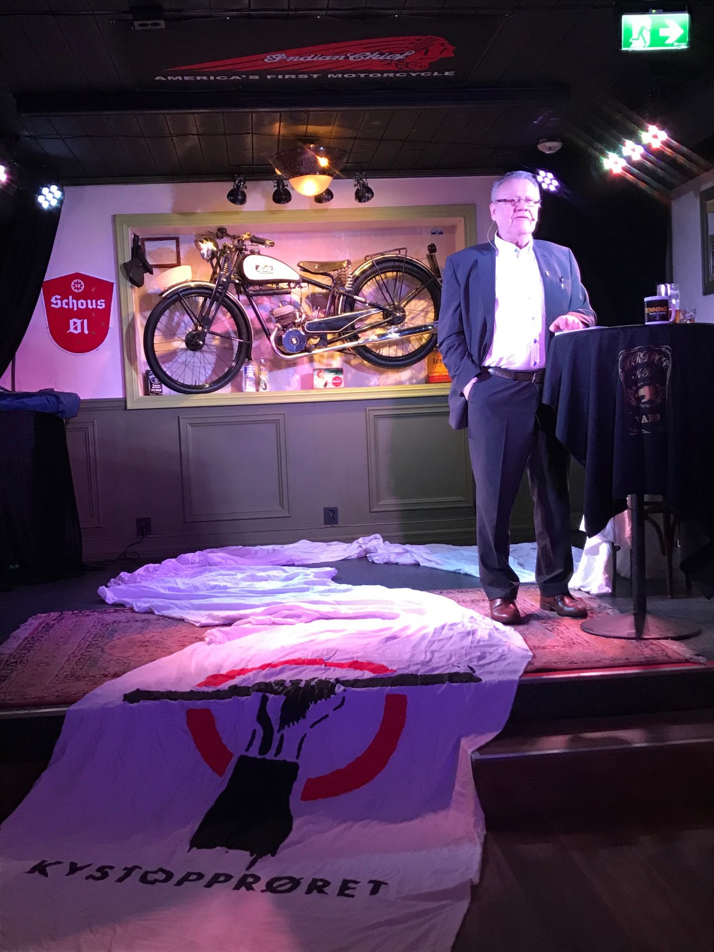 Arne Luther besøkte Kystopprøret vs. Tenning 2018. Her sammen med Aksel Robertsen, Monica Esbensen og Vegard Bangsund.