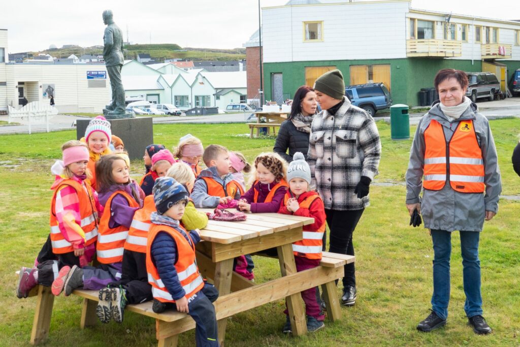 – Han reiste helt til Nordpolen, men ikke med fly og båt. Han gikk på ski. Han likte og være mye ute. Det er det vi skal gjøre her. Være mye ute. Derfor får dere en helt egen plass. Det er viktig at barn, på samme måte som voksne, har et sted å møtes. Hit kan dere ta med foreldre og familie, de voksne kan leke med eller sitte på benker. Synes dere det høres fint ut?