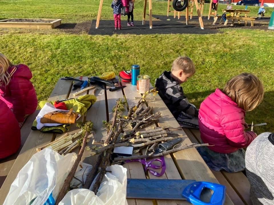 – Elevene har byttet på å spikke pinner og leke, og det ser ut som de har storkoset seg.