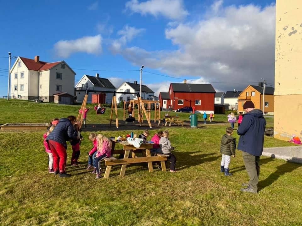 Torsdag benyttet første og andre klasse seg av det nydelige høstværet og tok skoledagen ute ved den nye lekeplassen.