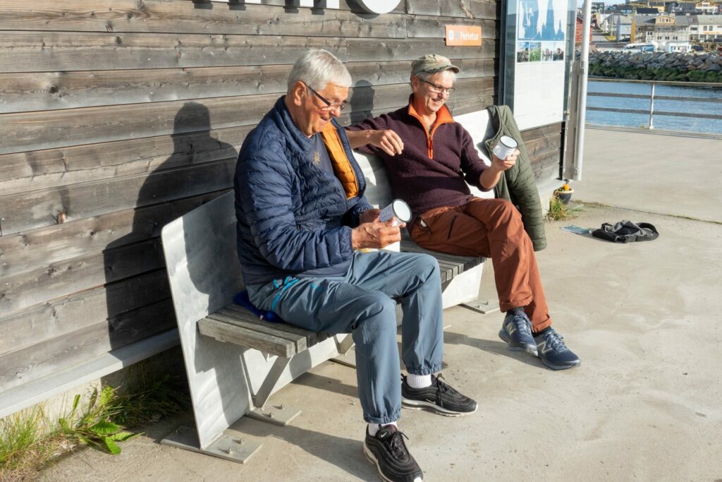 De sitter utenfor Infobygget i et nydelig høstvær, og nyter en av mange lunsjer sammen. Østhavet har tatt en prat over koppen med brødrene Bjørn og Stein Esaiassen.