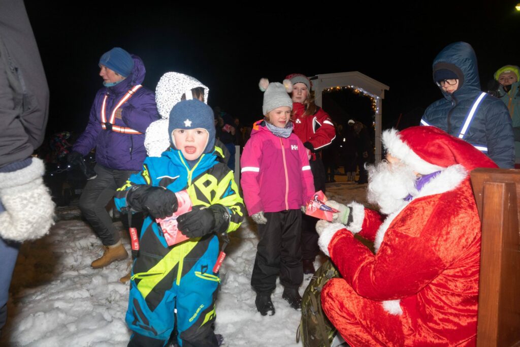 Julenissen besøkte også parken i Kiberg og barna fikk hver sin lille godteripose. Barna lekte og koste seg i snøen før det bar til Grillstua og den gamle brannstasjonen hvor barna fikk brus og boller, de voksne fikk kaffe eller gløgg.