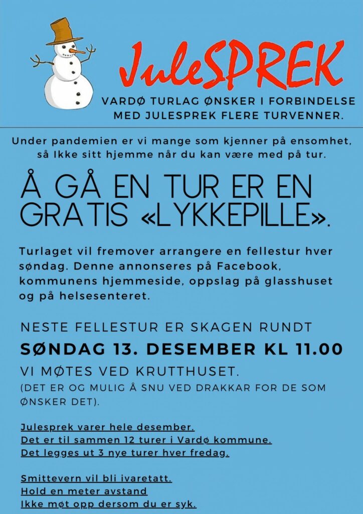 – Vi ønsker oss flere turvenner. Nå på slutten av året vil vi derfor invitere til fellesturer hver søndag i desember, sier Bodil Brinchmann og Inghild Ridola i Vardø turlag. Konseptet heter JuleSprek og de håper mange vil bli med.