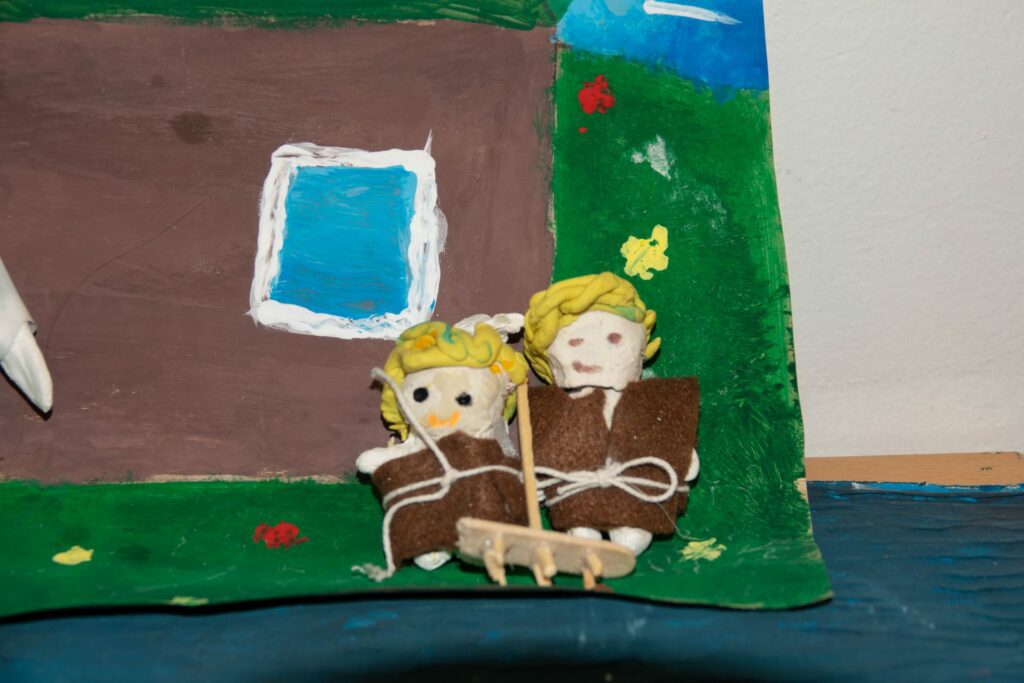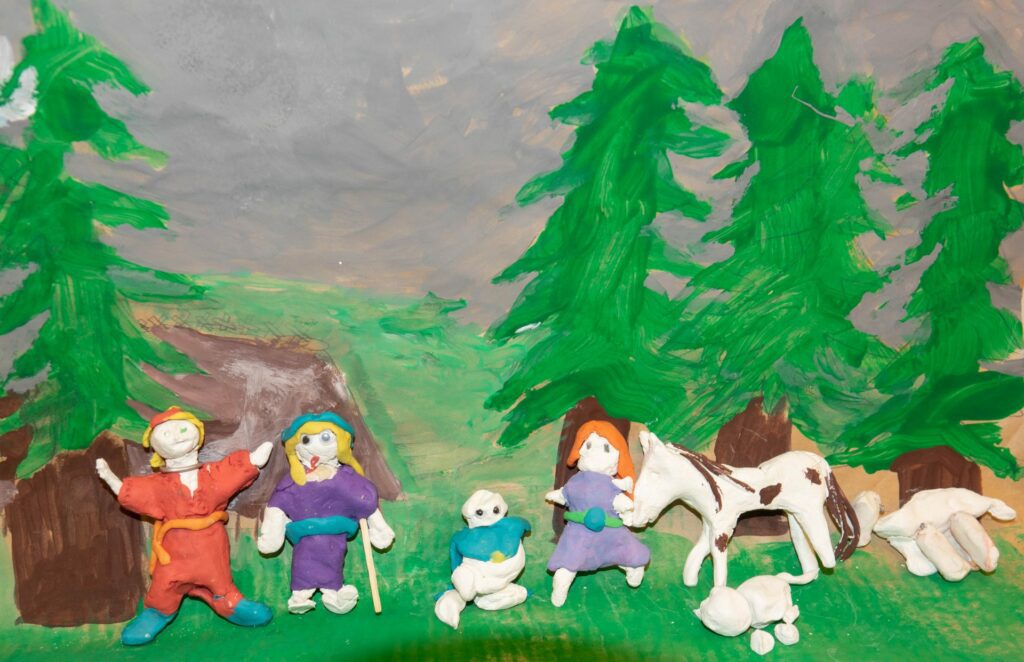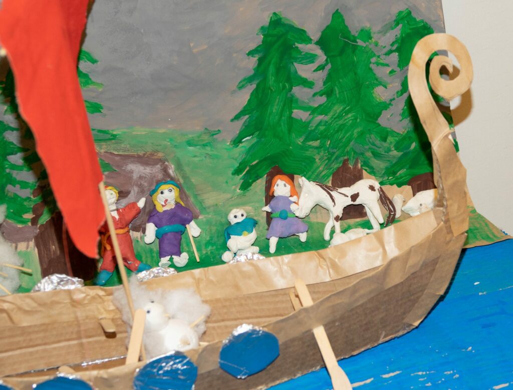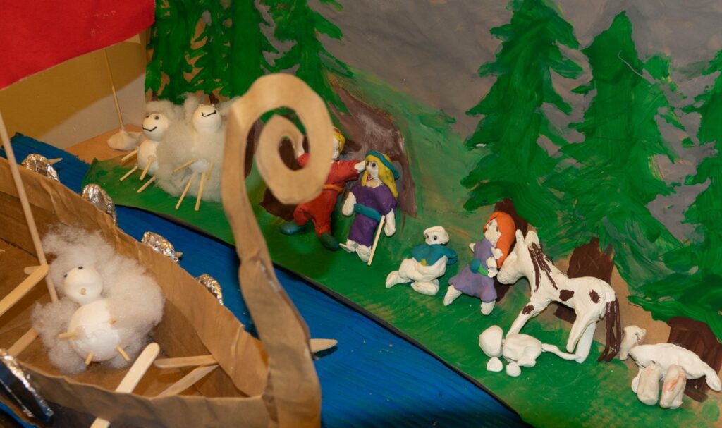 De hadde laget figurer av familien Hjort, som besto av en høvding, høvdingkona, tvillingdøtre og en trell. I tillegg hadde de laget sagaskipet Visund.