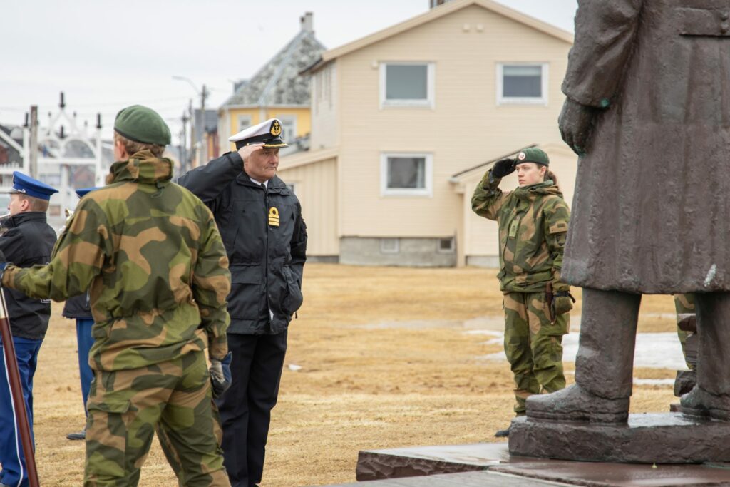 Det er en ære å få lov til å legge ned en krans for å minnes Kong Haakon VII. / de falne i Kiberg.