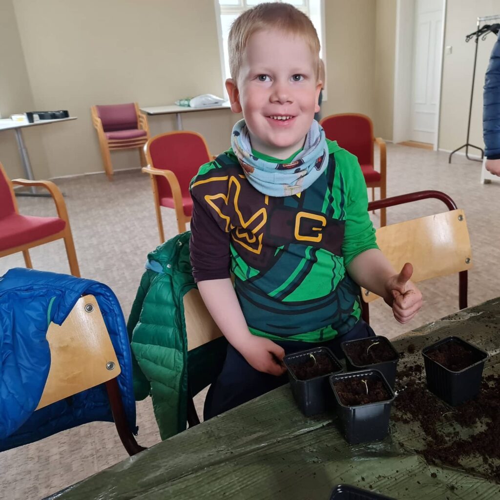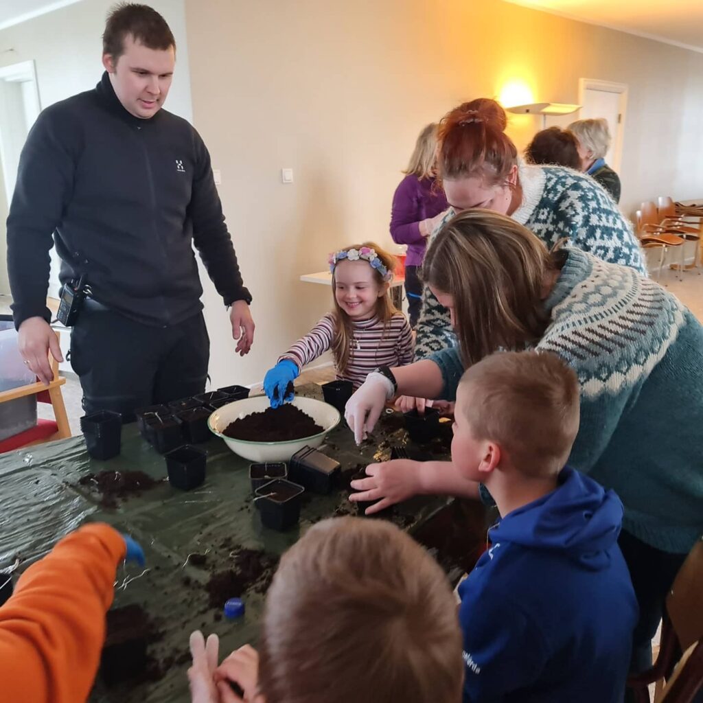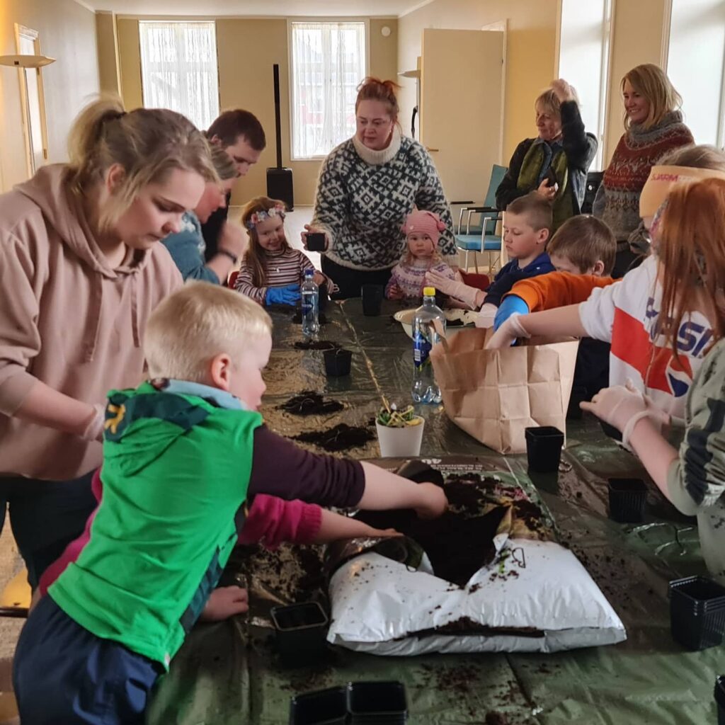Frammøtt var det mange flinke barn og foreldre. Det resulterte i at en mengde grønne fingre og plantebarn fikk nye «fosterforeldre». Barna fikk plantene med hjem for å følge og passe på plantenes vekst framover. Forhåpentligvis vil mange av disse fylle fellesskapsdrivhuset når det er ferdig.