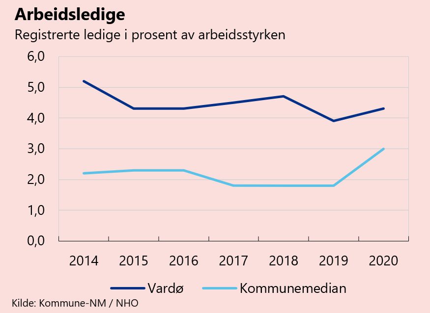 På arbeidsmarked generelt ligger Vardø i midtsjiktet i fylket og på en 236.plass i landet. På sysselsettingsandel ligger vi enda dårligere an. Vi er også blant de dårligste når det gjelder arbeidsledighet. Også her peker kurven i negativ retning.