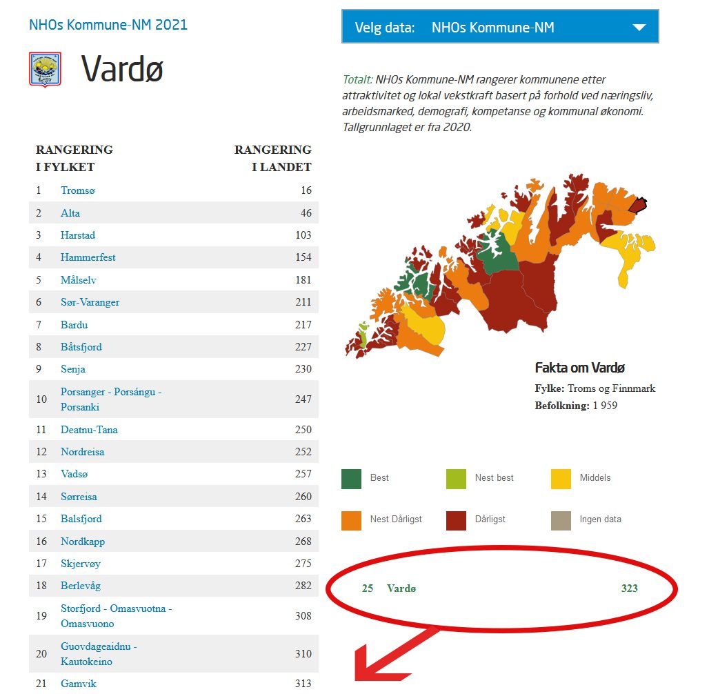 Kommune-NM: Vardø på 25.plass i fylket og 323.plass i landet