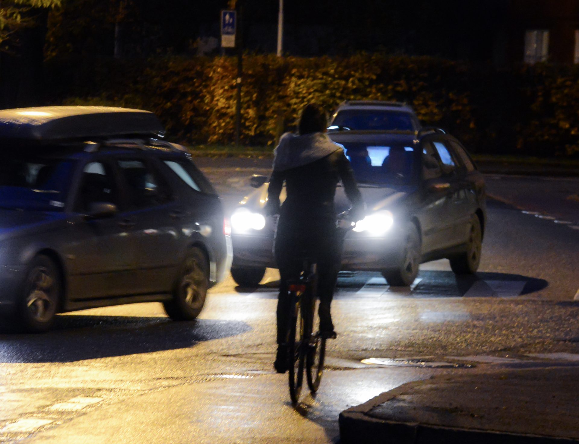 Statens vegvesen minner om at hvis du sykler uten lys har sjåføren bare sekunder på å reagere. Selv om du ser bilen, så ser ikke bilføreren deg. I høstmørket er du nærmest usynlig uten lys på sykkelen, og det kan i tillegg bli dyrt i kroner og øre.