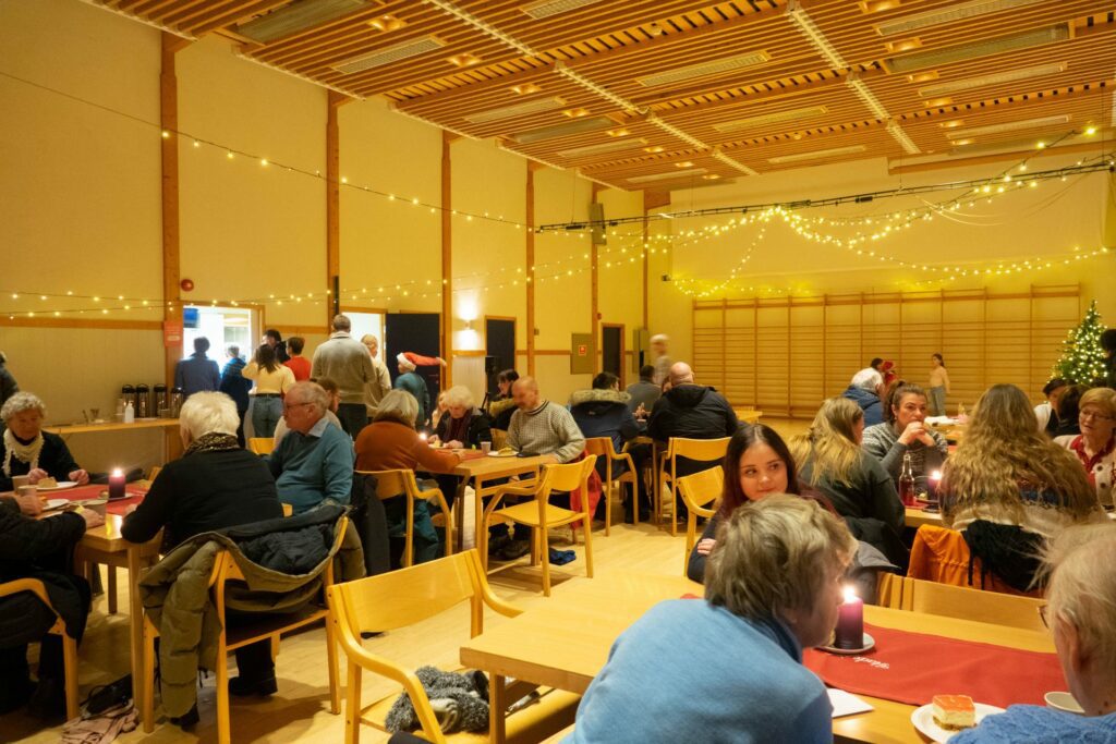 Da grantenninga var over, ble noen igjen for lek på stativene, men de fleste dro på Grendehuset for enda litt mer sosialt samvær. Her ble man møtt av bål i bålpanne og et flott pyntet hus. Inne fikk man nyte velsmakende kaker, kaffe og etter hvert åre-lotteri med mange premier, godt ledet av Elisabeth Vasshaug.