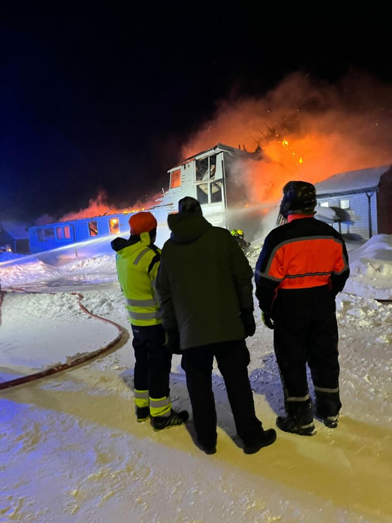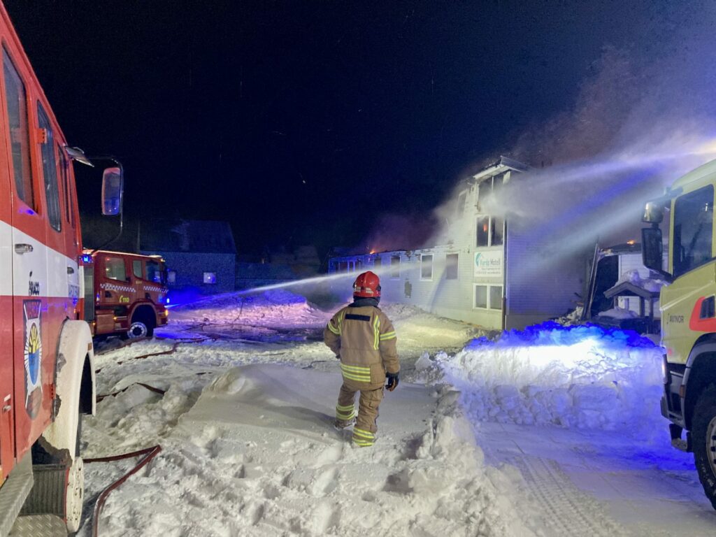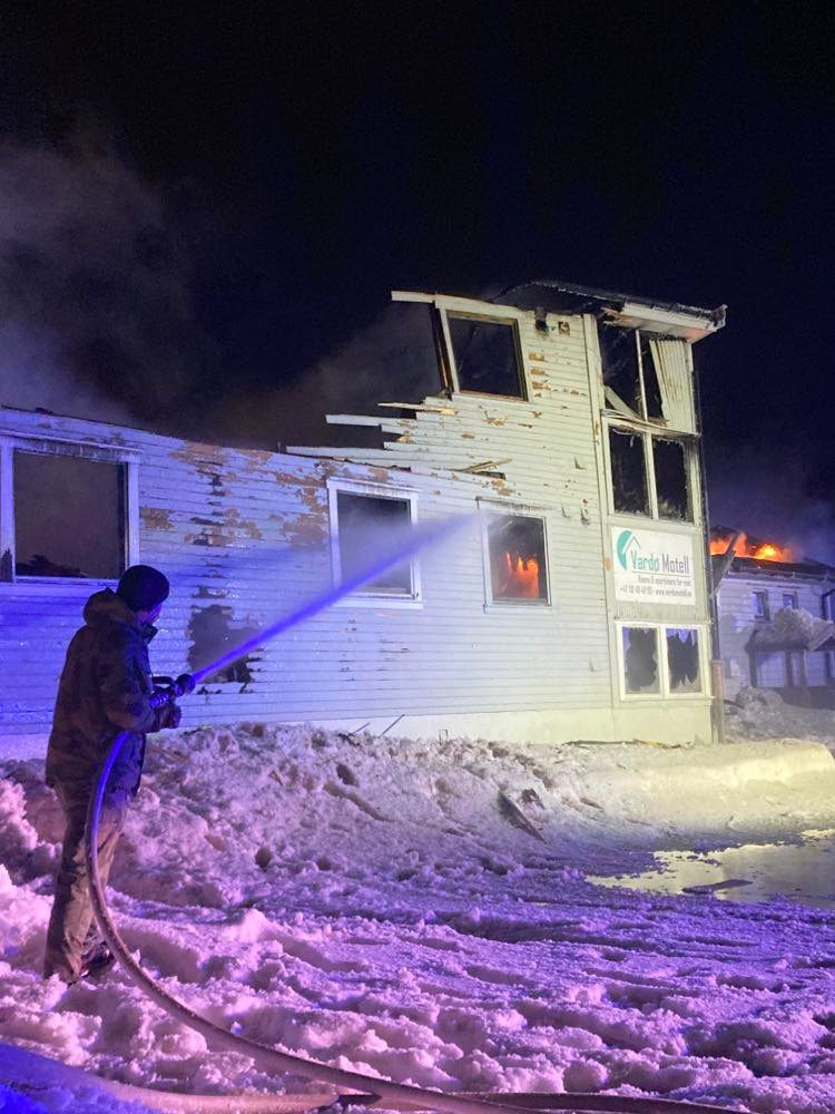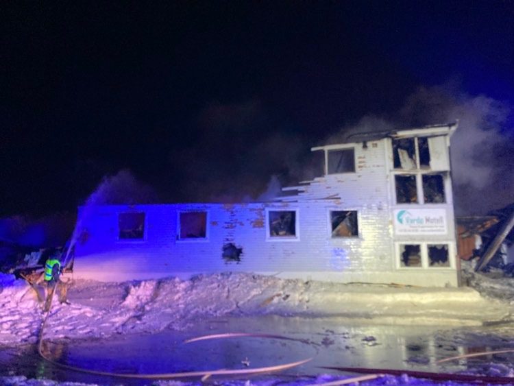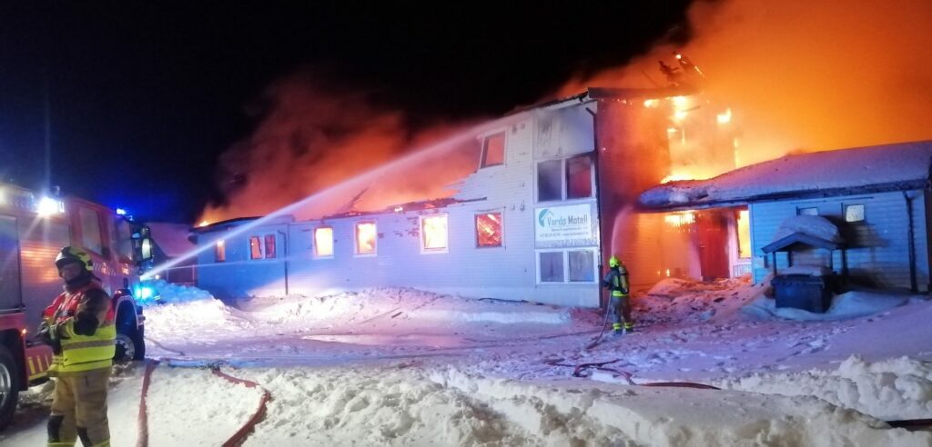 Det var en politipatrulje som natt til lørdag oppdaget brannen i det gamle hybelhuset, nå Vardø motell. Dette etter at man først hadde kjent røyklukt.