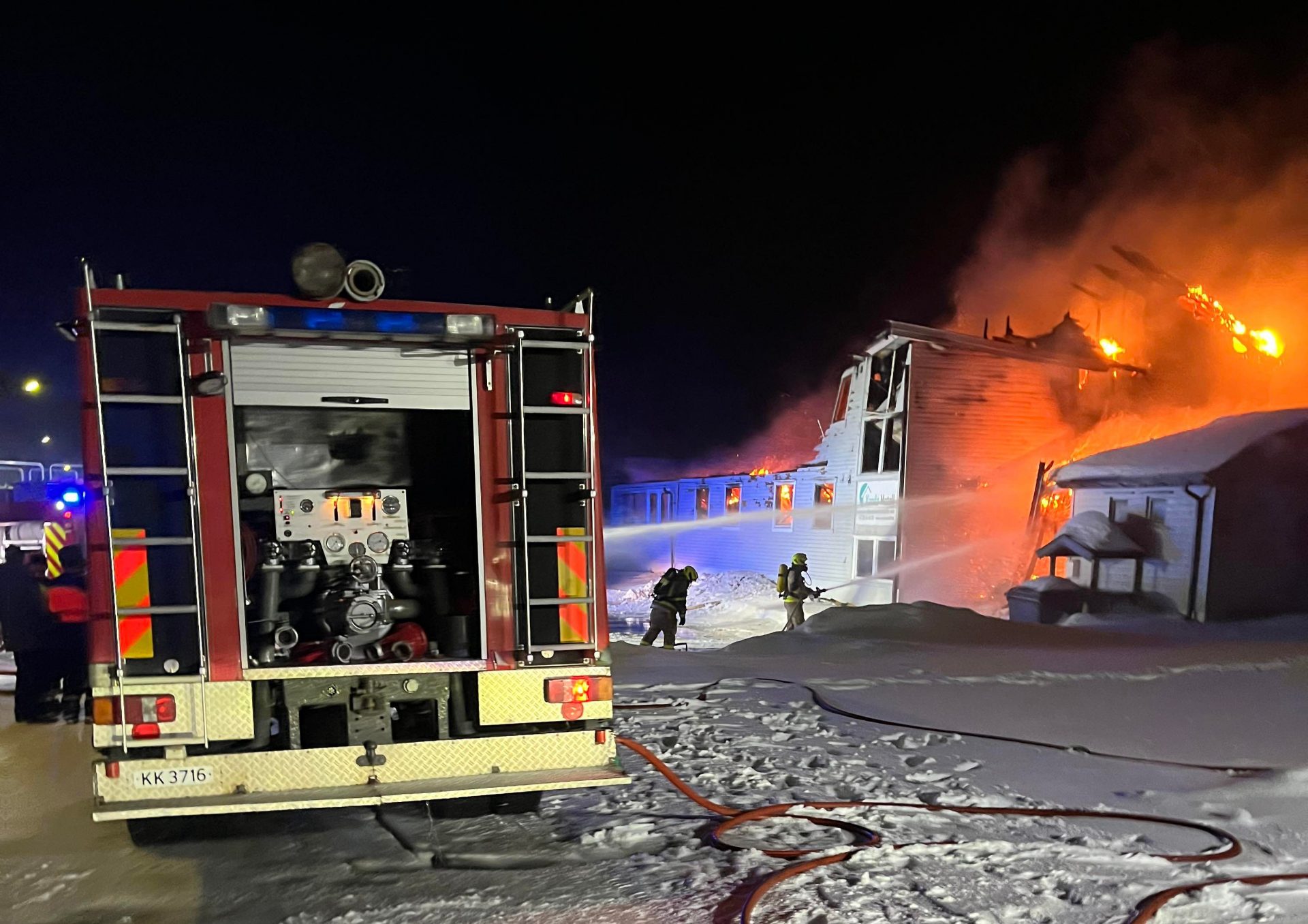 Det var en politipatrulje som natt til lørdag oppdaget brannen i det gamle hybelhuset, nå Vardø motell. Dette etter at man først hadde kjent røyklukt.