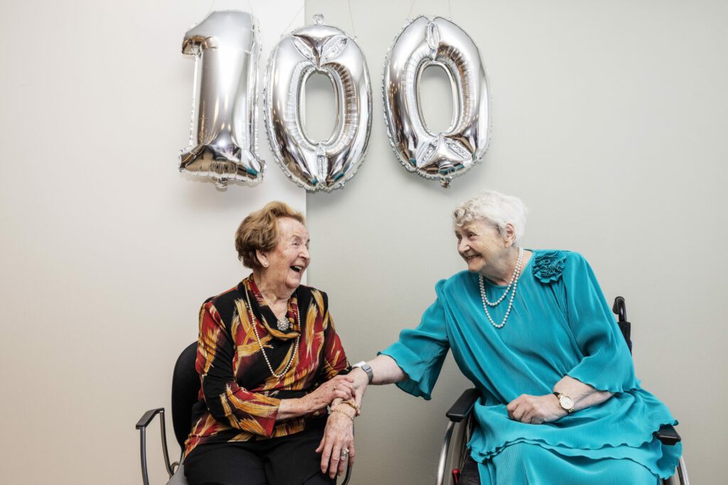 For 100 år siden ble Mimmi og Gerd født i Vardø i Finnmark. Tilfeldighetene gjorde at de – uvitende om hverandre i voksen alder – havnet på Kløvertun i Kristiansand 90 år senere. Mimmi fylte 100 år 13. mars, mens Gerd runder 100 den 26. april. Tirsdag 5. april var det dekket til fest og felles feiring med kaker, blomster og ballonger på Kløvertun, der de bor.